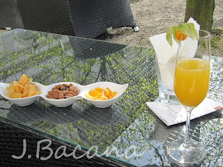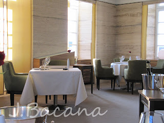 Mais para o fim da tarde, depois de passearmos e tirarmos bastante fotos do lugar, pausa para sentar no piano-bar do hotel montado do lado de fora...Nossa reserva para o restaurante era às 19h30. Nós já havíamos dado uma olhada no menu pela internet, e estávamos na dúvida: vamos a la carte (dois pratos indicados sao o mascarpone-ravioli marmoriert mit trüffel und weisser strauchtomatensauce [ravioli de marcarpone marmorizado (?) com trufas e tomatinhos brancos] e o Seezunge in Ganzen gebraten mit Palourdemuschelkompott und Zitronen-Hollandaise [linguado inteiro assado com palourdemuschel (?) e limao-hollandaise (?) ]) ou vamos experimentar o menu? Perguntamos para o maître, e ele disse que o menu era uma opcao para degustarmos mais pratos e criacoes do chef. Como quem está na chuva é para se molhar, decidimos que optaríamos pelo menu de... 22 pratos :-D Foi uma experiência única, mas que namorido e eu nao pretendemos repetir mais: apesar do menu realmente possibilitar conhecer vaaaaaaaaarias criacoes do chef, foram definitivamente pratos demais (aliás, teve um casal lá pelos 80 anos sentados do nosso lado que deram conta dos 22 pratos sem problema nenhum!!!). Quando as sobremesas comecaram a chegar, eu já nao estava com a mínima fome, só gula. Solucao: de cada uma, só provei uma colher (e o resto foi para o prato de namorido que estava a toda, hehehe).