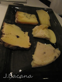 Primeiro amuse-bouche (metade pra mim, metade pra namorido :-) ): de frente para trás - terrine de porco, mini-quiche e um biscoito salgado (que nao lembro mais o nome)