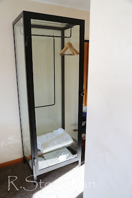 ... bem interessante para um quarto de hotel:dá impressao de mais espaco no quarto, ao contrário do que seria um armário de madeira macica