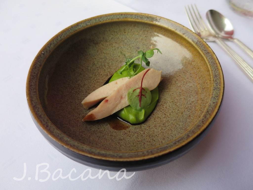 Outro amuse bouche: filezinhos (nao lembro mais de que carne) com purê de ervilha.