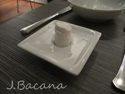 Antes do prato principal, uma mini torrezinha que, regada com água, se abria numa toalhinha para as maos :-)