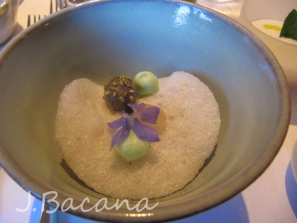 O amuse-bouche era muito criativo :-) Acompanhava um baldinho (com uma saladinha), um mini-regador (com uma mousse), um canteiro (nao sei do que era a 'terra', mas era ótima!) e uma colher em formato...