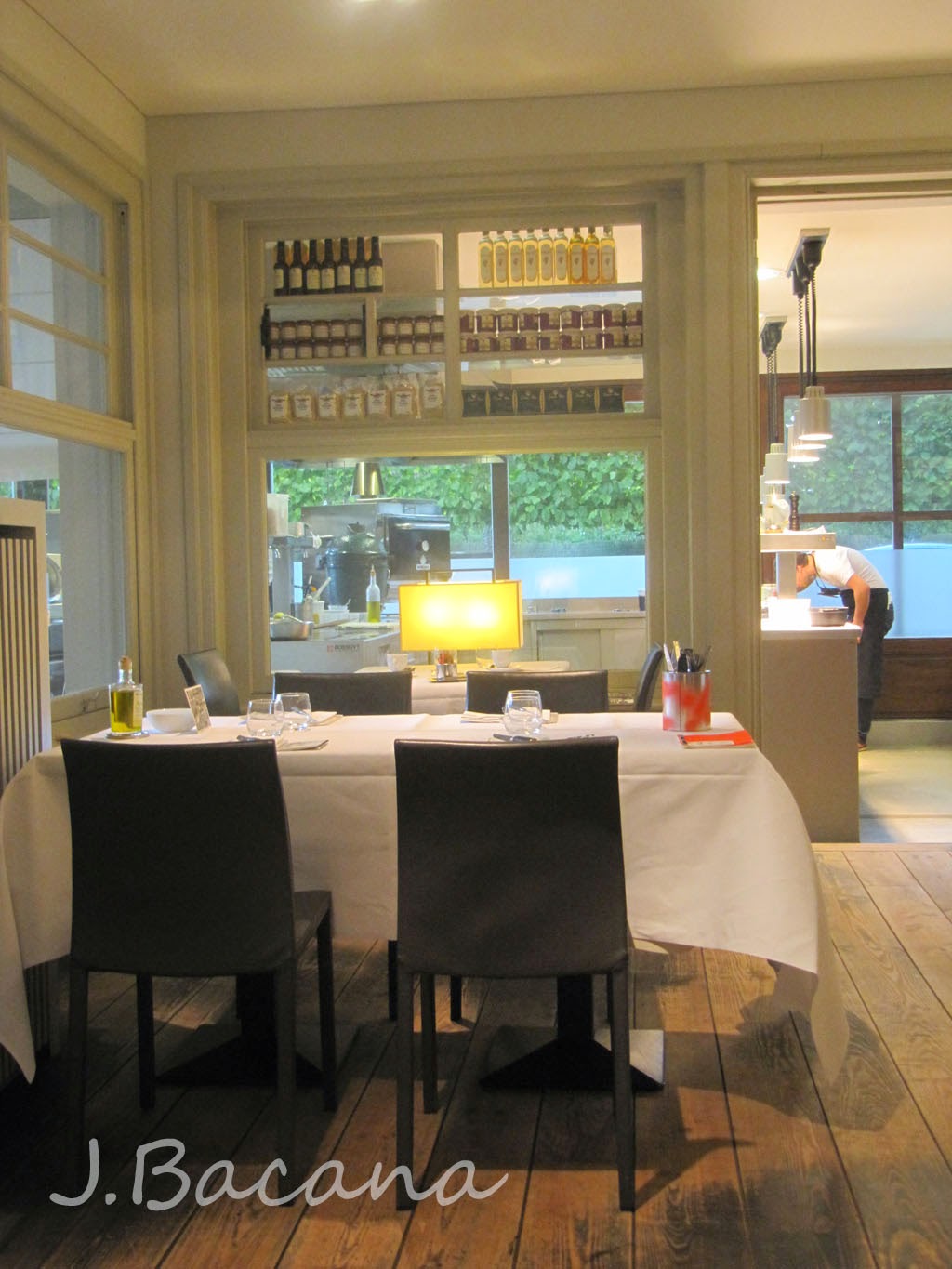 O antigo Hertog Jan virou o atual L.E.S.S.. De algumas mesas, é possível ver o movimento na cozinha.