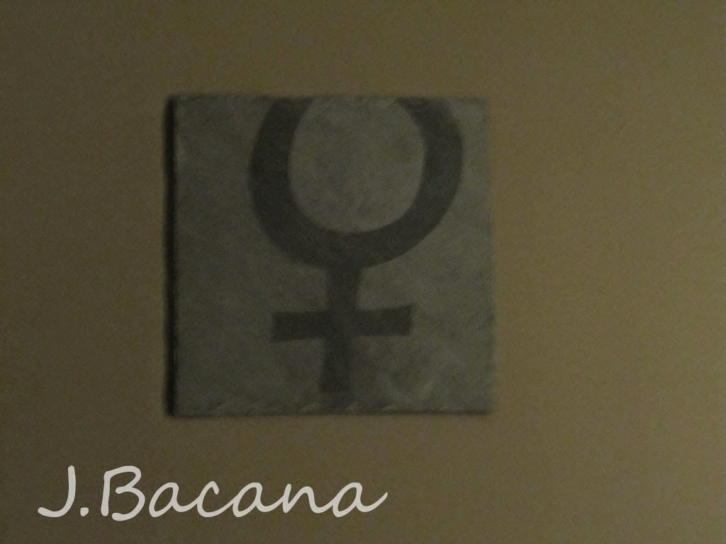 Antes de voltarmos para o carro (mal sabíamos que ainda passaríamos algumas horas no estacionamento do restaurante...), fui rapidinho no banheiro. Na porta, o símbolo identificando o banheiro feminino do masculino (eu confesso que SEMPRE me confundo qual é qual!)