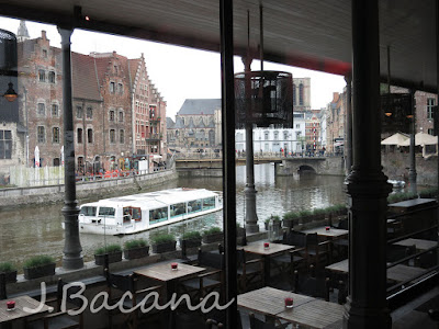 Domingo à noite, jantamos em Gent, na Brasserie Oude Vismijn. A vista é linda, com janeloes dando para o rio Leie.