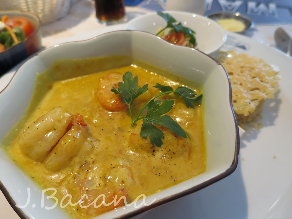 Meu prato principal (muuuuuuito bom!): camarao ao molho de leite de côco e curry...
