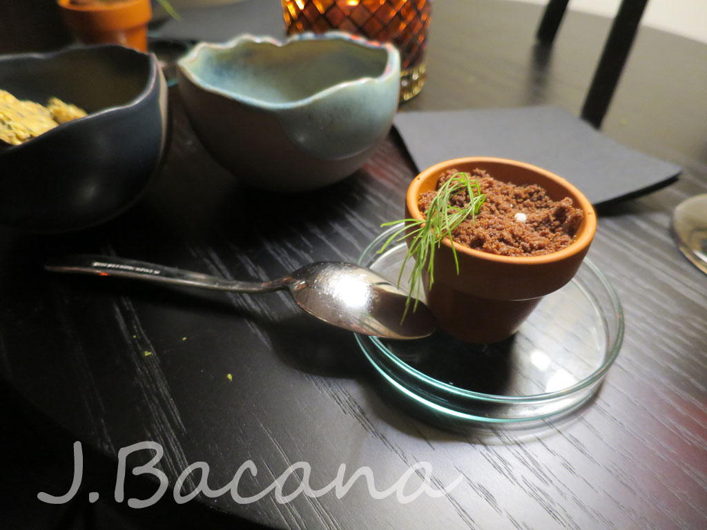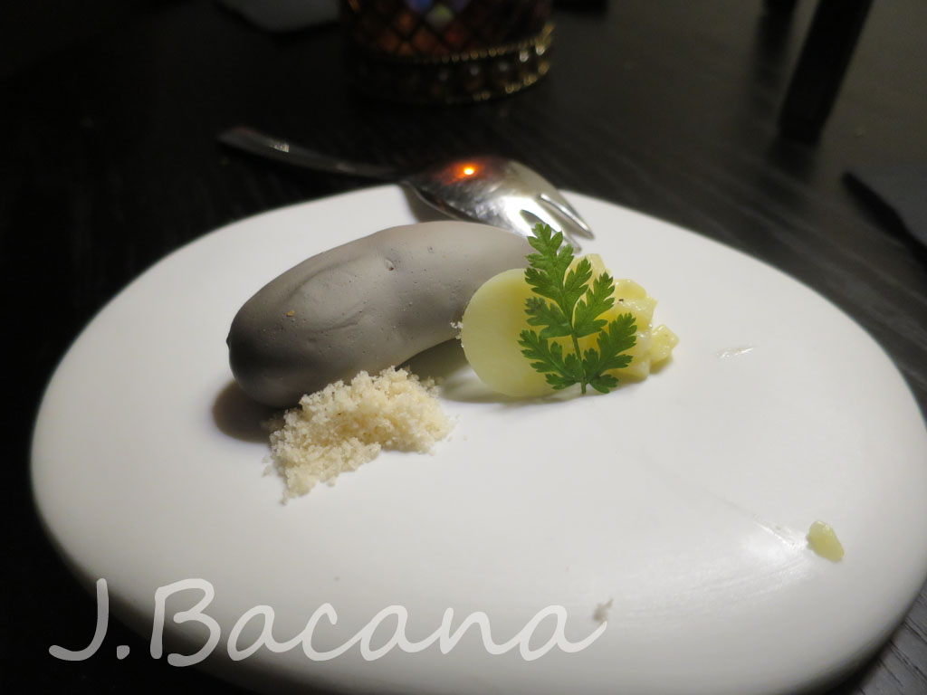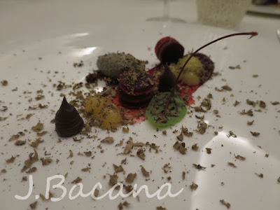 Como sobremesa, algo inesperado (e cujo gosto definitivamente nao é o meu, mas foi interessante experimentar :-) ): variacao de beterraba com lascas de trufas.
