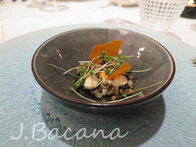 Primeira entrada: tartare (nao lembro mais do que! Definitivamente minha memória nao é mais a mesma!) com sorbet (de mostarda ou curry? Nao lembro!) e...