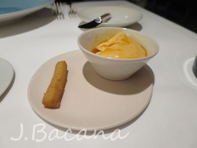 Terceira entrada: langoustine com bouillabaisse. Eu nao sou fa de bouillabaisse mas essa nao tinha um gosto de peixe...